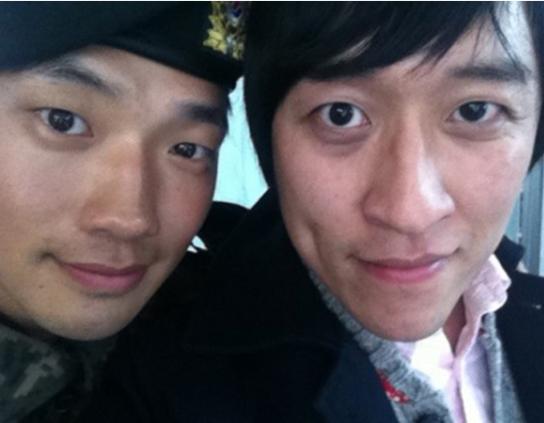 지난 17일 빽가는 자신의 트위터를 통해 "지훈이는 특급전사가 되었습니다 맛난밥도먹고 그간 밀린수다떨고 정신없이 웃으며 즐거운 시간보내고있습니다"라는 글과 함께 비와 함께 찍은 사진을 공개했다.