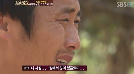 가까스로 악어섬을 탈출한 뒤 김병만은 눈물을 쏟기 시작했다. 그는 "물 건너와서 얘기하는데 나 사실 섬에서 많이 힘들었다"며 가슴 속 얘기를 꺼내며 눈물을 보인 것.