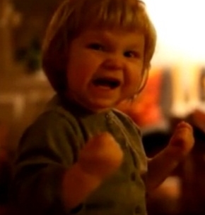 화면 속 한 여자아이는 책상에서 자동차 장난감을 가지고 놀고 있던 중 장난감을 책상 밑으로 떨어뜨리고 영화에 나오는 괴물인형 처키를 연상하게 만드는 사악한 웃음을 짓고 있는 것.