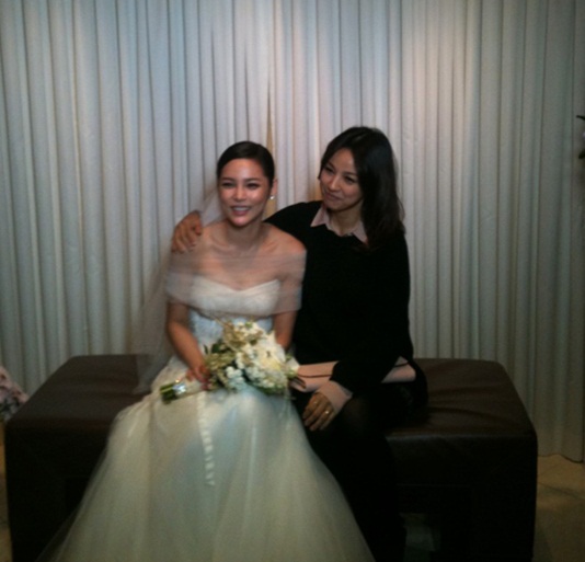 이효리는 19일 자신의 트위터에 “너무너무 예쁜신부 오늘 정말 예쁘다”라는 글과 함께 한 장의 사진을 공개했다.