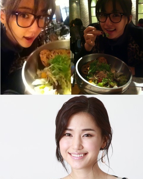 사진 속 공현주는 화장기 없는 얼굴에 뿔테 안경을 쓰고 야채샐러드를 먹고 있다.