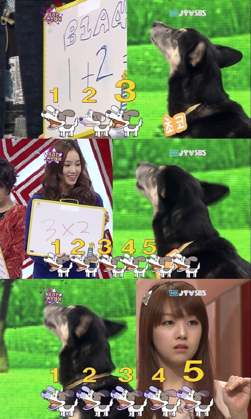 가벼운 덧셈부터 나눗셈까지 문제의 대한 답의 숫자만큼 짖어 스튜디오를 경악케 했다.