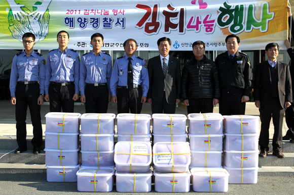 신안군 수협의 수산물 위판액이 최고 기록을 경신한 가운데 신안수협 관계자 등이 직접 담근 김장배추를 해경 경비함에 전달하며 중국어선 단속에 감사의 뜻을 전했다.
