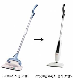 ▲2008년 이전 생산모델(좌)과 2008년 하반기 출시된 건강스팀청소기(우). 좌측 사진은 바닥에 닿는 본체에 스팀장치가 내장된 모습이다.