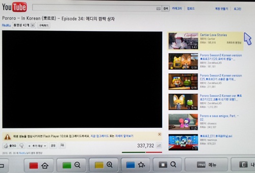 웹브라우저에서 동영상 재생을 클릭해도 '플레시플레이어10'으로 업그레드하라는 안내문만 뜰 뿐 정작 실행이 안되는 문제가 발생했기 때문이다.