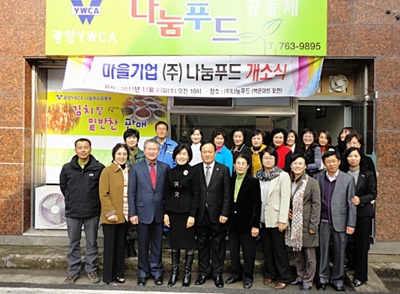 광양시 마을기업 (주)나눔푸드가 지난 23일 YWCA 상임이사, 마을기업․예비사회적기업 관계자, 광양시의회 박노신 의장, 김정태 의원, 허정화 의원, 김성희 의원, 산단개발추진단장 등이 참석한 가운데 광양읍 칠성리에 위치한 마을기업 사업장에서 개소식을 가졌다.