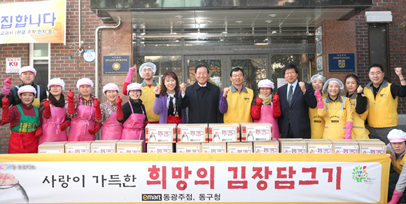 URL복사 기사공유하기 스크랩 프린트 메일보내기 글씨키우기 유태명 동구청장은 11월 24일 오전 10시 30분 동구노인복지관 사랑의 식당에서 열린 ‘이마트 동광주 지점 후원 김장담기 행사’에 참여, 자원봉사로 나선 동구사랑 여성회 회원들과 함께 김치를 버무리고 저소득 주민들을 위문했다. [마이경제 뉴스팀/소비자가 만드는 신문=노광배 기자] 저작권자 © 소비자가 만드는 신문 무단전재 및 재배포 금지 노광배 기자 다른기사 보기 URL복사 기사공유하기 주요기사 한미그룹, '2030년 매출 5조' 중장기 비전 제시...최소배당금제도 실시 오너 3세 최윤정, SK바이오팜 전략본부로 이동...미래 전략 실행 속도 높인다 광동제약, 박상영 낙점...빠른 의사결정으로 사업 추진력 강화 김동연 지사, "여주가남 산단클러스터 기업 유치 적극 나설 것" 롯데물산, 롯데월드타워에 국내 육상 1호 스타링크 도입…소방방재 시스템 고도화 김동연 지사, 전국 최고 동물복지시설 '여주 반려마루' 운영 상황 점검