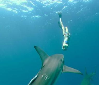 제주도 연안에 등장한 상어떼로 어획량이 줄고 있다.
