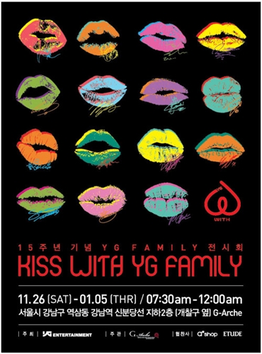 YG엔터테인먼트는 지난 26일부터 2012년1월5일까지 신분당선 강남역 지하3층 지아르체에서 지난 15년을 되돌아보는 ‘키스 전시회’를 개최한다.