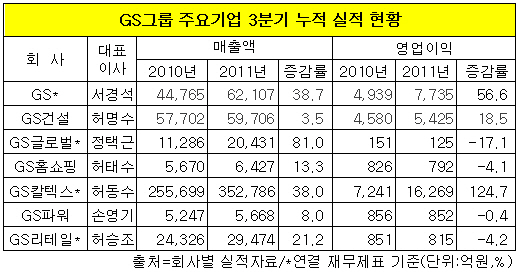 허창수 GS그룹 회장의 오른팔격인 서경석 부회장이 이끌고 있는 GS도 실적이 양호했다.