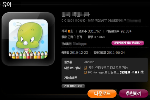 29일 서울시 서초구 서초동에 사는 권 모(여.36세)씨는 최근 5살 된 아이를 위해 T스토어에서 색칠놀이를 할 수 있는 무료앱을 다운받았다.