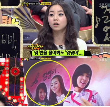29일 방송된 SBS ‘강심장’에 출연한 소희는 팬 사인회에서 이름을 엉덩이라고 한 팬에 대해 이야기했다.