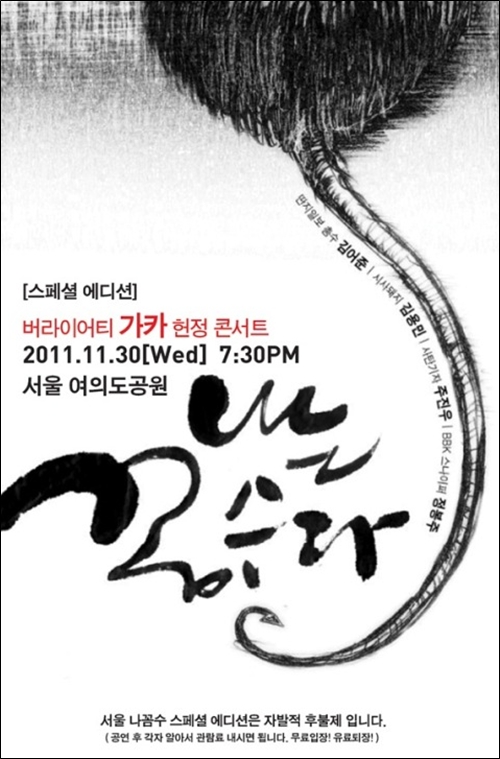 ‘나꼼수’ 서울공연은 만화가 강풀이 직접 웹과 트위터용 포스터 디자인을 맡아 출연진들의 캐릭터를 공개해 화제를 모으기도 했다.