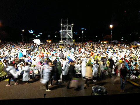 당일 서울에 비가 추적추적 내리는 날씨에도 이들은 여의도로 발걸음을 옮긴채 우비와 우산으로 비를 피하며 공연에 참석하는 열띤 모습을 보였다.