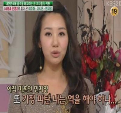 이어 민지영은 "이제 시집을 가야하는데 나중에 시댁 어른들이 내 실제생활까지 오해하실까봐 고민했다"며 "그런데 나도 모르게 대본을 외우고 있었다. 역할도 가정을 파탄내는 역할이 맞았다"고 말했다.