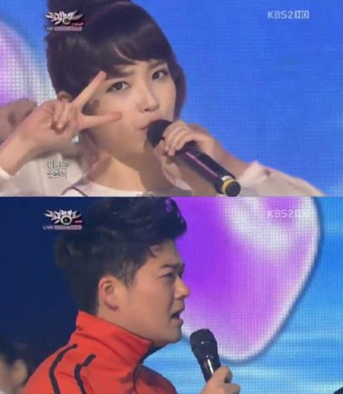 2일 오후 방송된 KBS 2TV '뮤직뱅크'에서 가수 아이유의 컴백무대에 전현무 아나운서가 지원사격을 나섰다.