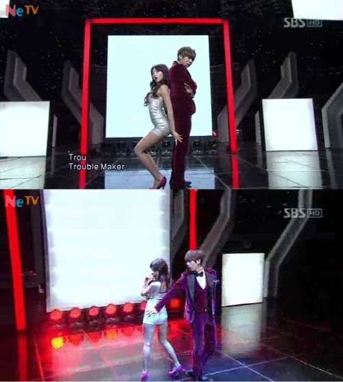 포미닛의 현아와 비스트의 장현승이 결성한 유닛그룹인 트러블메이커는 4일 SBS ‘인기가요’를 통해 도발적인 커플댄스를 선보였다.