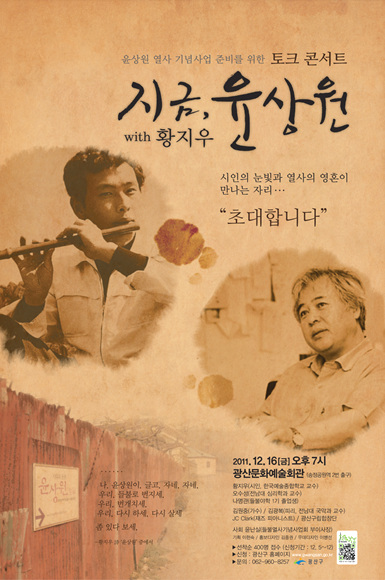 광주광역시 광산구는 오는 16일 열리는 토크 콘서트 <지금, 윤상원 with 황지우> 관람 신청을 구청 홈페이지(www.gwangsan.go.kr)를 통해 접수받는다.