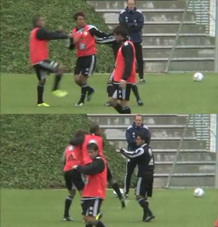 독일 볼프스부르크의 구자철이 팀 동료와 난투극을 벌이는 동영상이 공개됐다.