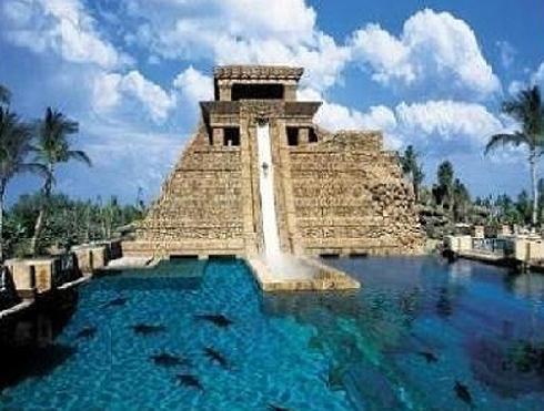 공개된 수영장은 바하마에 있는 호텔 수영장으로 입구에서 슬라이드를 타고 상어 수족관을 지나 수영장으로 들어가는 구조로 되어 있다.