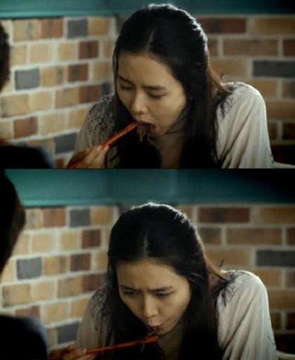 공개된 손예진의 짜장면 흡입 장면은 남다른 '촉' 때문에 연애가 곤란한 여자 여리(손예진)가 조구(이민기)에게 '공포를 극복하는 법' 중 하나로 배터지게 먹는 방법으로 짜장면을 흡입하는 모습이었다.