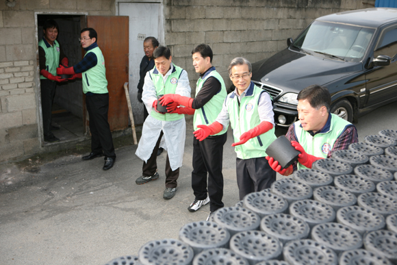 전남지방우정청은 6일 추운 겨울을 맞아 서구 벽진동 일원에서 '사랑의 연탄1만장 나눔 행사'를 펼쳤다.