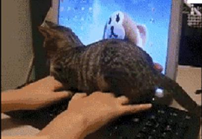 주인이 컴퓨터를 사용하고 있는 도중에 아랑곳 않고 손 위에 앉아버리는 고양이의 행태가 웃음을 유발한다.