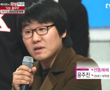 윤주진씨는 '끝장토론'에서 ‘나는 꼼수다는 선동적 매체인가 대안언론인가’란 주제로 토론이 진행된 가운데 정봉주 전 의원과 설전을 벌여 눈길을 끌었다.
