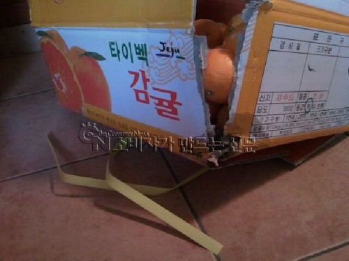 한 상자는 황금향(단맛이 강하고 신맛이 적은 감귤의 일종으로 제주도 특산품)과 귤이 섞여 있는 것이였고, 나머지는 일반 감귤로 각각 다른 곳으로 배송될 예정이었다.