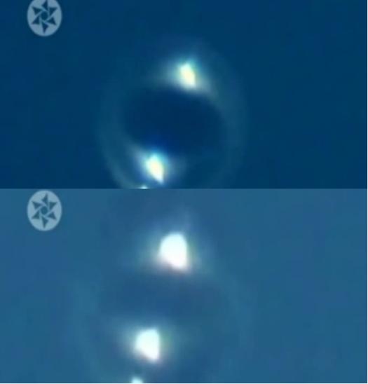 이 UFO는 특히 동그란 도넛 형태로 가운데 부분이 뻥 뚫린 모습을 하고 있으며, 두 개의 투명한 고리가 연결된 채 내부에는 밝은 불꽃을 보인다.