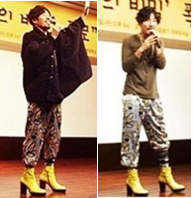 노홍철은 이날 굽이 높은 노란색 구두에 배기팬츠를 입고 나와 강연을 펼쳐 학생들의 시선을 사로잡았다.