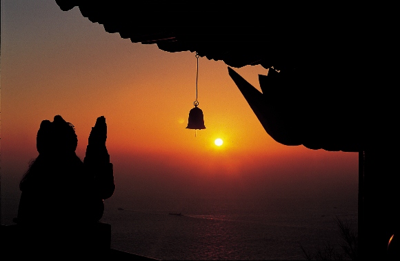 전국 4대 관음기도처 중의 하나인 향일암은 금오산 기암절벽 사이의 울창한 동백나무와 남해의 수평선에서 솟아오른 일출 광경이 천하일품이어서 전국 각지에서 관광객들이 찾는 명소.
