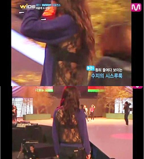 수지 반전 의상은 본 팬들은 "오 수지 반전 의상 멋지다", "갖고 싶다 어디꺼지?", "대담한데?"등의 반응을 보였다. (사진-Mnet)