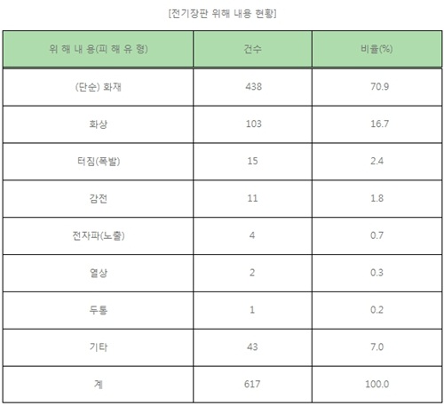 또 사용 중 화상을 입은 사례도 16.7%(103건)로 꾸준히 발생했으며 온도조절기와 관련해서 조절기가 터지거나 감전사고를 일으키는 등 순서로 나타났다.