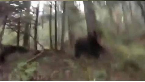 도망가던 남성은 거친 숨을 몰아쉬며 검은 물체가 쫓아오지는 않는지 간간이 뒤를 돌아보며 경계했다. 네티즌들은 이 검은 물체를 곰으로 추정하고 있다.