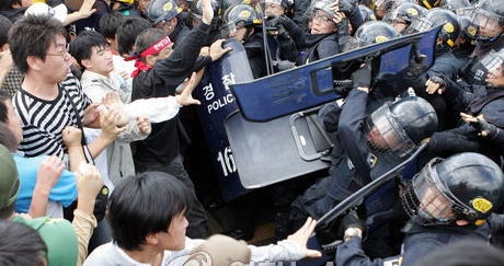 10일 경찰에 따르면 이날 낮 12시께 서울 종로구 청와대 앞 분수광장에서 FTA 시위를 벌이던 한국대학생연합 소속 대학생 15명(여성 11명, 남성 4명)이 연행됐다.