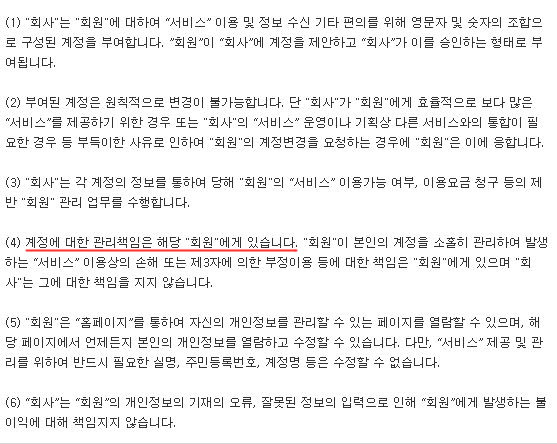 공정거래위원회의 소비자분쟁해결기준에서도 사전 공지없는 서비스 중단과 부당계약에 관한 게임업체의 책임 기준은 명시하고 있으나 계정의 도난, 해킹에 관한 기준은 아직 없다.