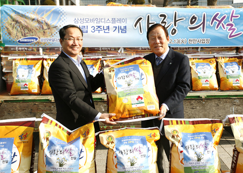 삼성모바일디스플레이 조수인 사장이 13일 지역사회 저소득층을 위한 '사랑의 쌀 기증'행사를 열고 연말 훈훈한 이웃사랑 실천에 나섰다.