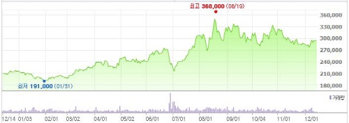 한편 CJ제일제당은 14일 전 거래일 종가와 동일한 29만4천원에 장을 마쳤다. 1년 전(21만 2천원)과 비교해 39% 오른 수준이며 올 하반기 들어 꾸준한 성장세를 보이고 있다.