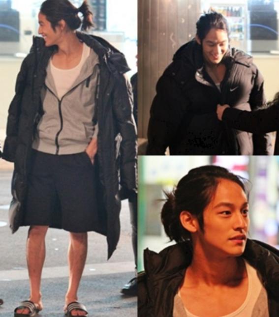 드라마 ‘빠담빠담’ 촬영 중에 김범이 반바지와 슬리퍼 차림을 선보여 네티즌들의 관심을 끌었다.