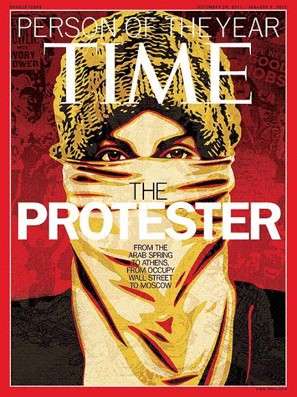 이어 타임지는 "새해 시작부터 중동을 시발점으로 유럽, 미국 월스트리트, 러시아의 붉은 광장까지 부패와 무능으로 얼룩진 기존 체제에 저항하며 세계의 정치 질서를 재정립 했고 민중의 힘을 세계 곳곳에 알렸다"고 말했다.