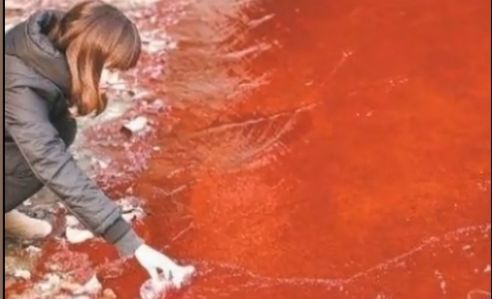 중국의 한 강물이 완전히 핏빛으로 물드는 놀라운 현상이 발견됐다.