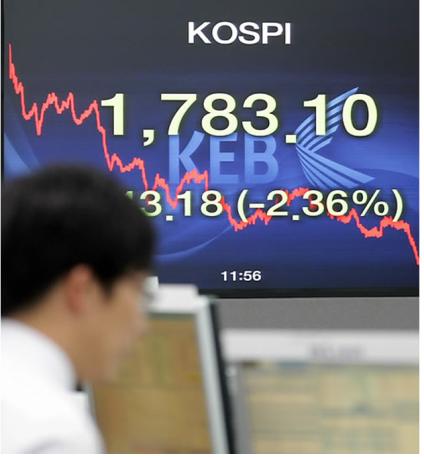 김정일 사망으로 코스피와 아시아 주요 증시가 19일 급락했다.