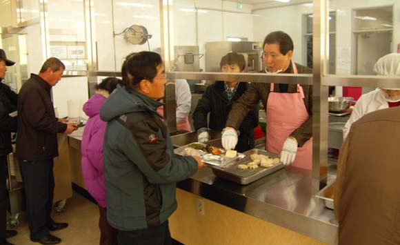 전갑길 민주통합당 광산갑 예비후보(일명, 미스터 광산)는 19일 지역 노인들을 위해 사랑의 밥퍼주기 봉사활동을 가졌다.이날 오전 11시 30분 광산구 송정동 ‘송정권노인복지관’를 방문, 사랑의 식당에서 앞치마를 두르고 밥과 반찬을 그릇에 담아 300여명의 어르신들에게 점심을 배식하고 덕담을 나누었다.
