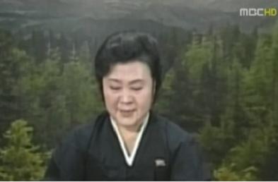 북한의 조선중앙TV가 '특별 방송'을 예고한 19일 낮 12시 리춘희(68ㆍ여) 아나운서가 검은색 한복을 입고 화면 앞에 섰다.
