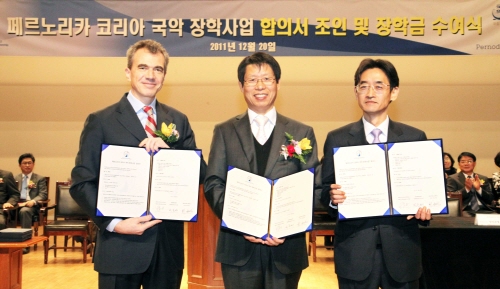 페르노리카 코리아(대표 장 마누엘스프리에)는 20일 국립국악중고등학교에서 문화체육관광부와 ‘장학사업 협약식’을 맺고 2011년 장학생 36명에게 장학금 총 600만원을 전달했다고 밝혔다.