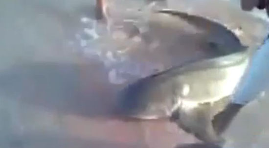이 영상에 대해 네티즌들은 "물고기인가? 상어인가?", "손정말 아플 듯", "진짜 크다" 등의 관심을 보이고 있다. (사진-온라인 커뮤니티)