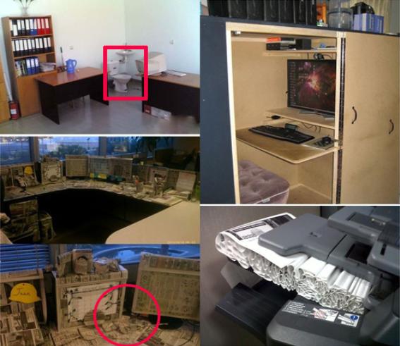 게재된 출근하기 싫은 사무실 사진에는 화장실 가는 시간도 줄이고자 책상 바로 옆에 변기가 놓여있고, 책상 주변으로 빼곡히 메모지로 도배됐다.