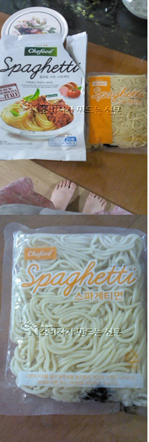 21일 서울 구로구 오류2동의 김 모(여.26세)씨에 따르면 그는 근처 슈퍼에서 롯데삼강 쉐푸드 토마토 미트 스파게티(유통기한 2012.03.26)를 구입했다. 내용물을 개봉한 김 씨는 기겁했다. 하얀 스파게티 면에 시커먼 곰팡이가 피어있던 것.
