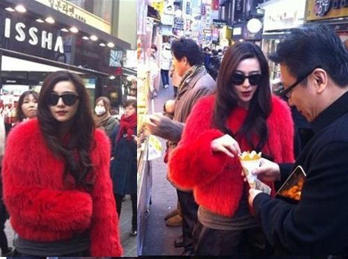 사진을 올린 네티즌은 '명동 칼국수집을 찾아가는 판빙빙! 저 화려한 외모로 명동을 누비는! 미녀도 소용없구나. 맛있는 것 앞에서 좋다고 웃는 판빙빙씨!"라는 글과 함께 판빙빙의 명동 포착 사진을 올렸다.